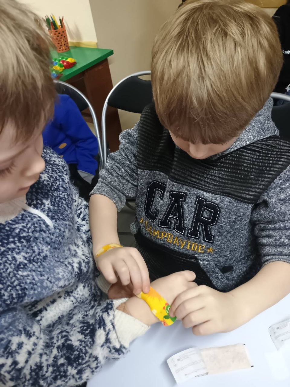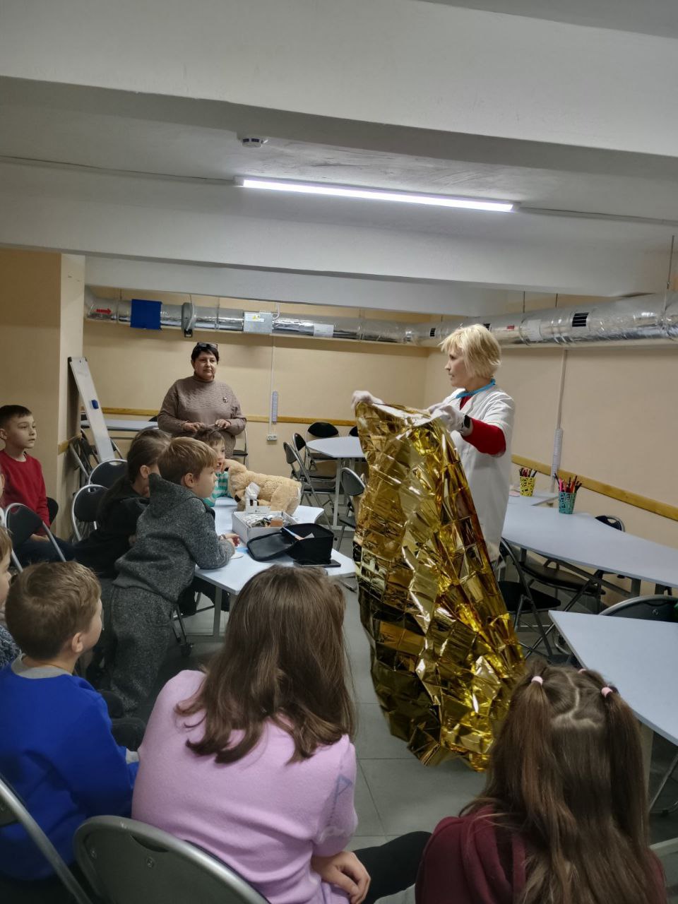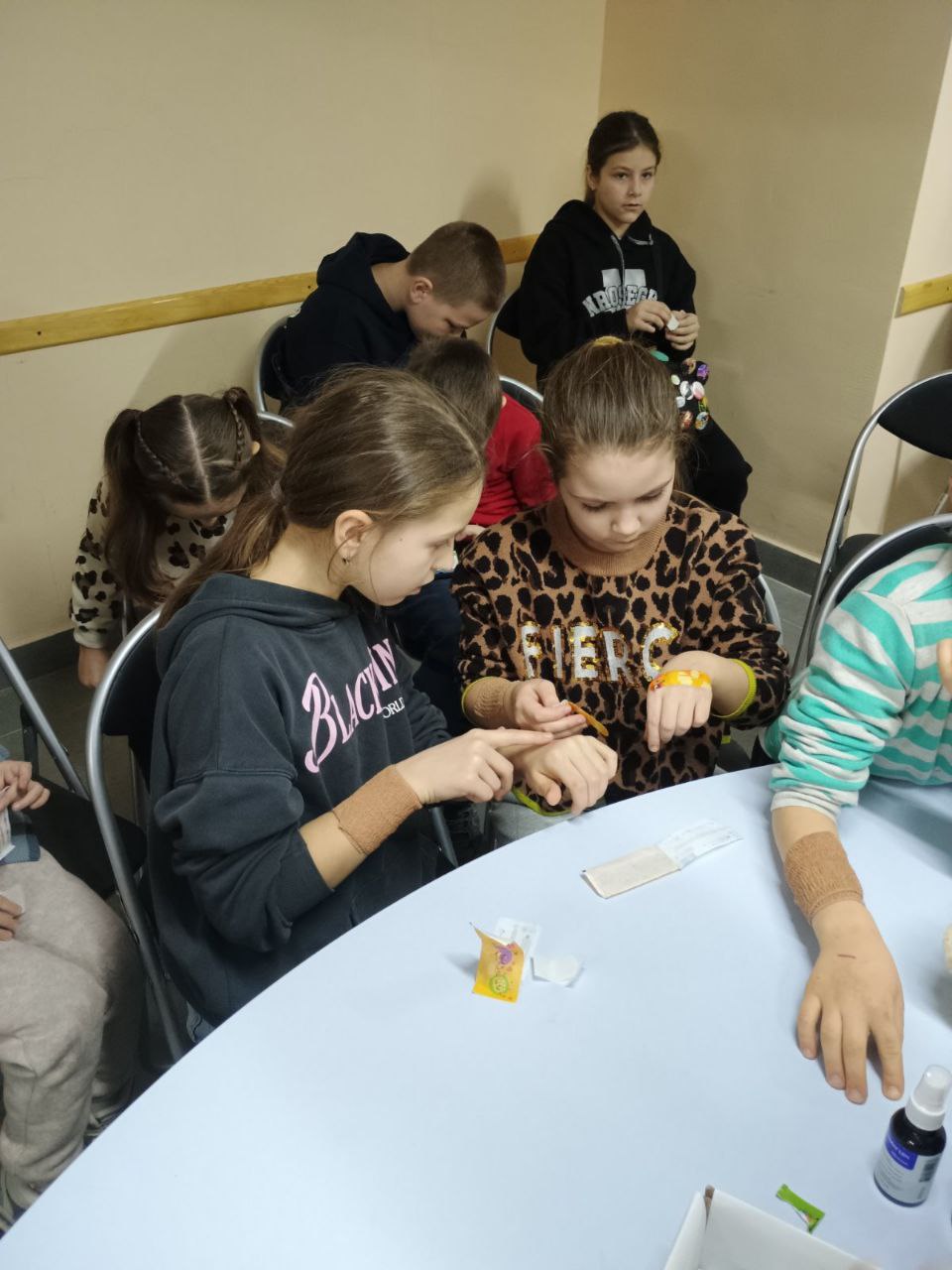 Разом вони вчилися правильно діяти при носовій кровотечі, ударах, опіках та невеликих порізах. Маленькі «медики» накладали «холод», обробляли «ранки», користувалися пластирями та обговорювали, як не розгубитися й допомогти в разі потреби. Кожне завдання виконувалося з цікавістю, відповідальністю та щирим бажанням допомогти.