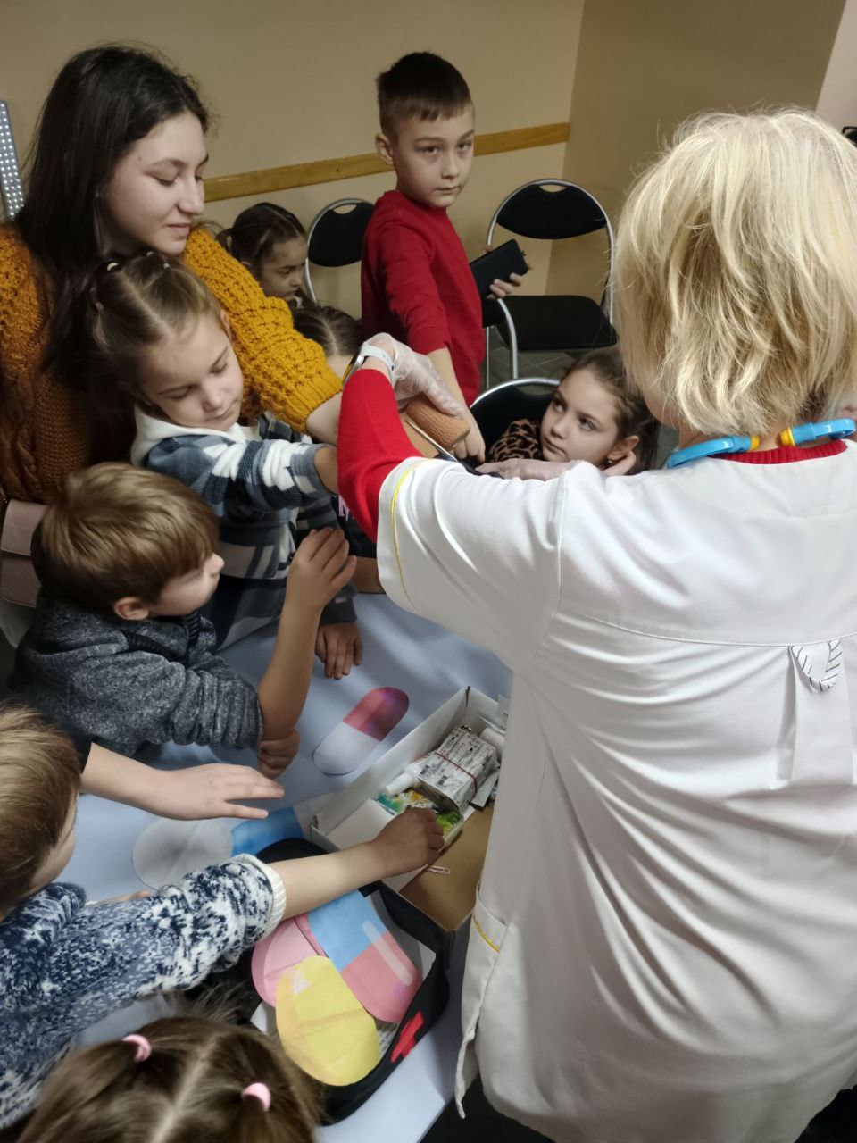Цього разу діти перевтілилися у справжніх лікарів і з великим захопленням допомагали «постраждалим» у змодельованих ситуаціях.
